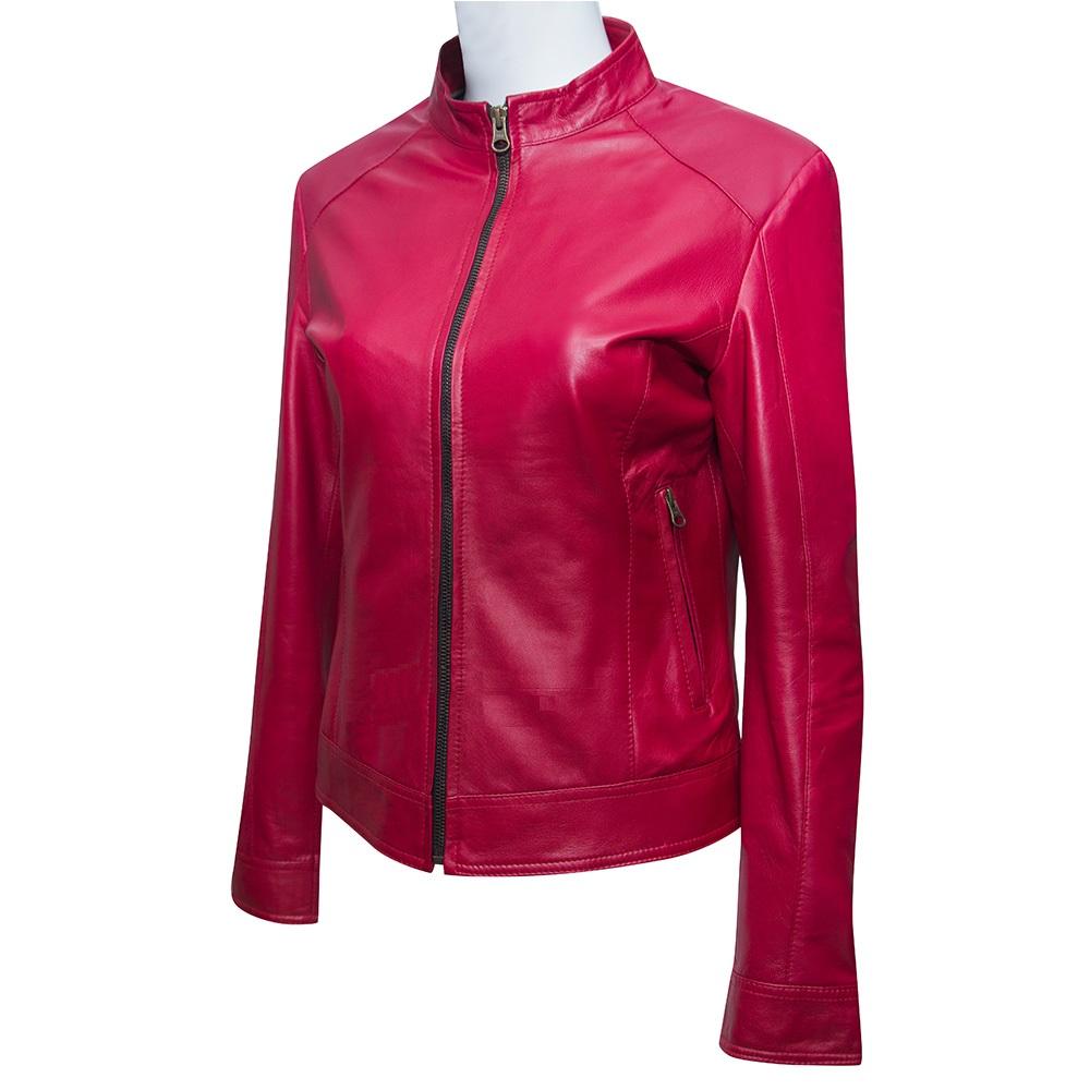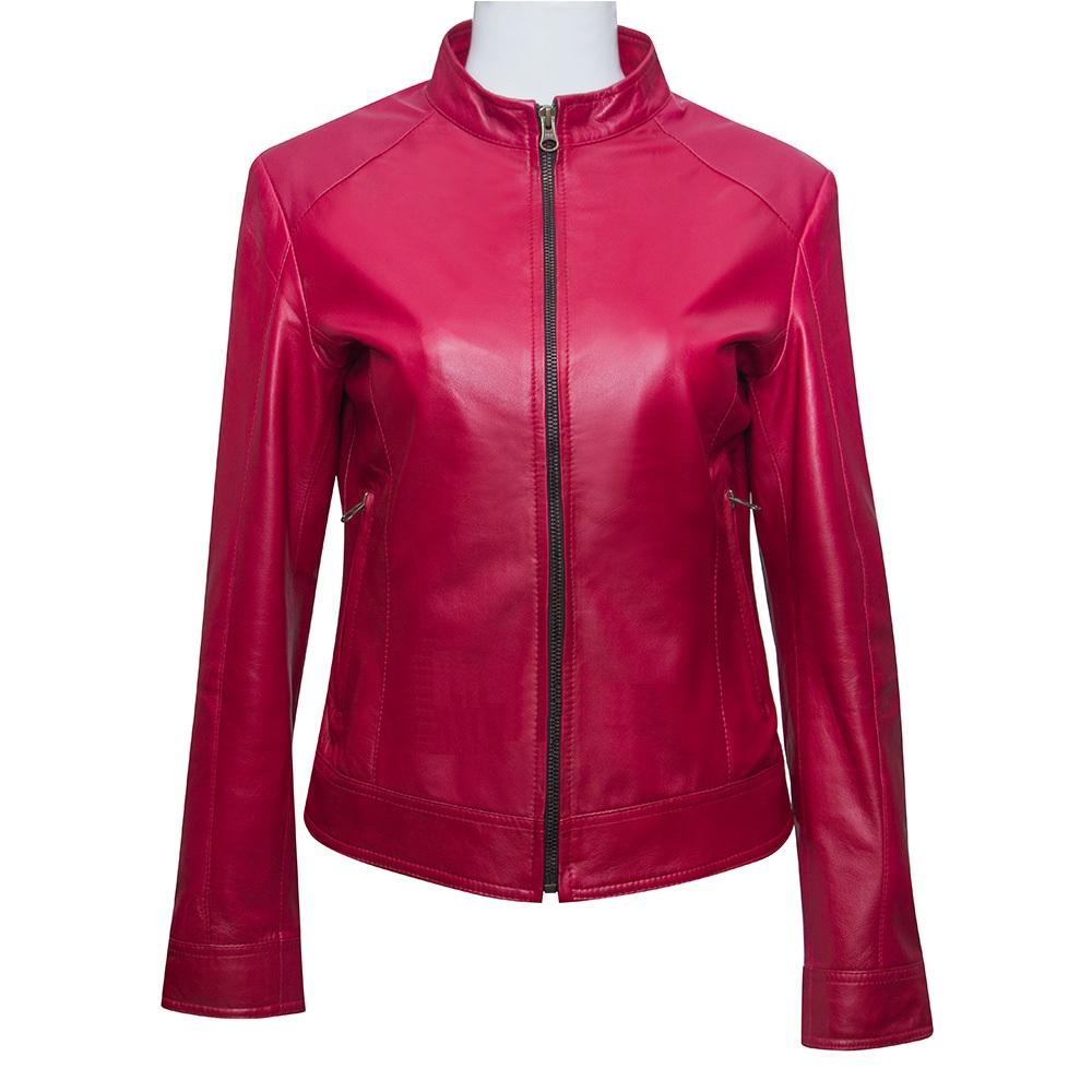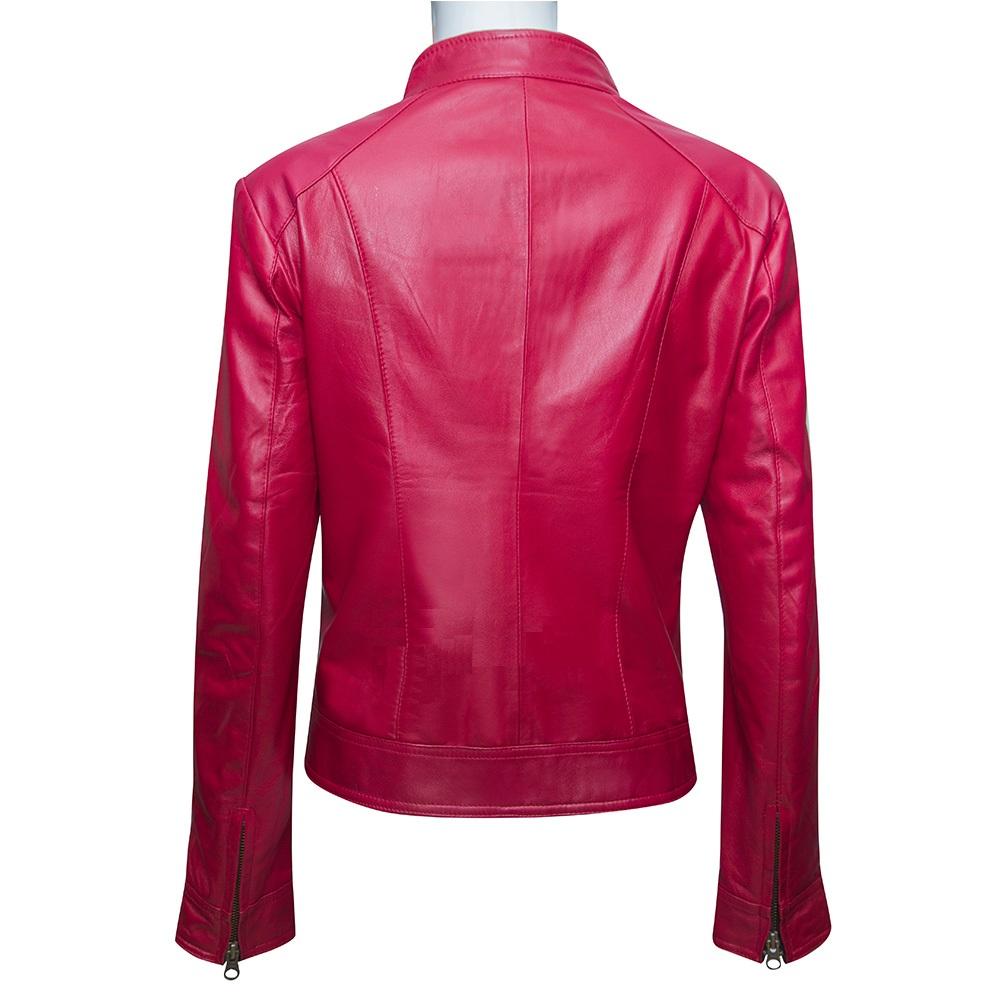 ÁO KHOÁC DA CỪU NỮ MÀU ĐỎ DÁNG TRƠN