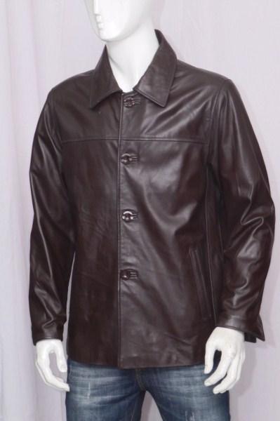 ÁO KHOÁC DA ĐƯỢC MAY TỪ DA BÒ THẬT KIỂU CỔ BẺ KHUY CÚC MÀU NÂU TÂY 110